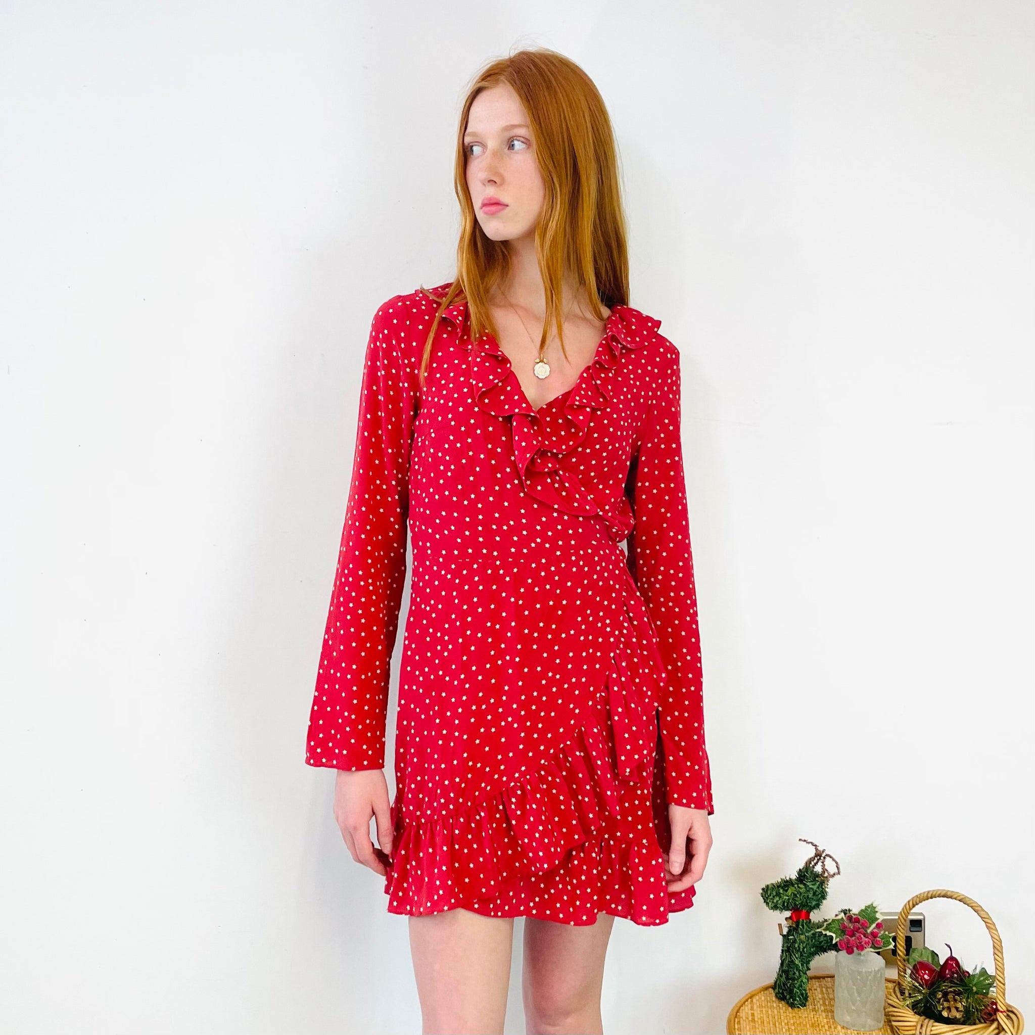 Silk Star Print Wrap Dress (M)