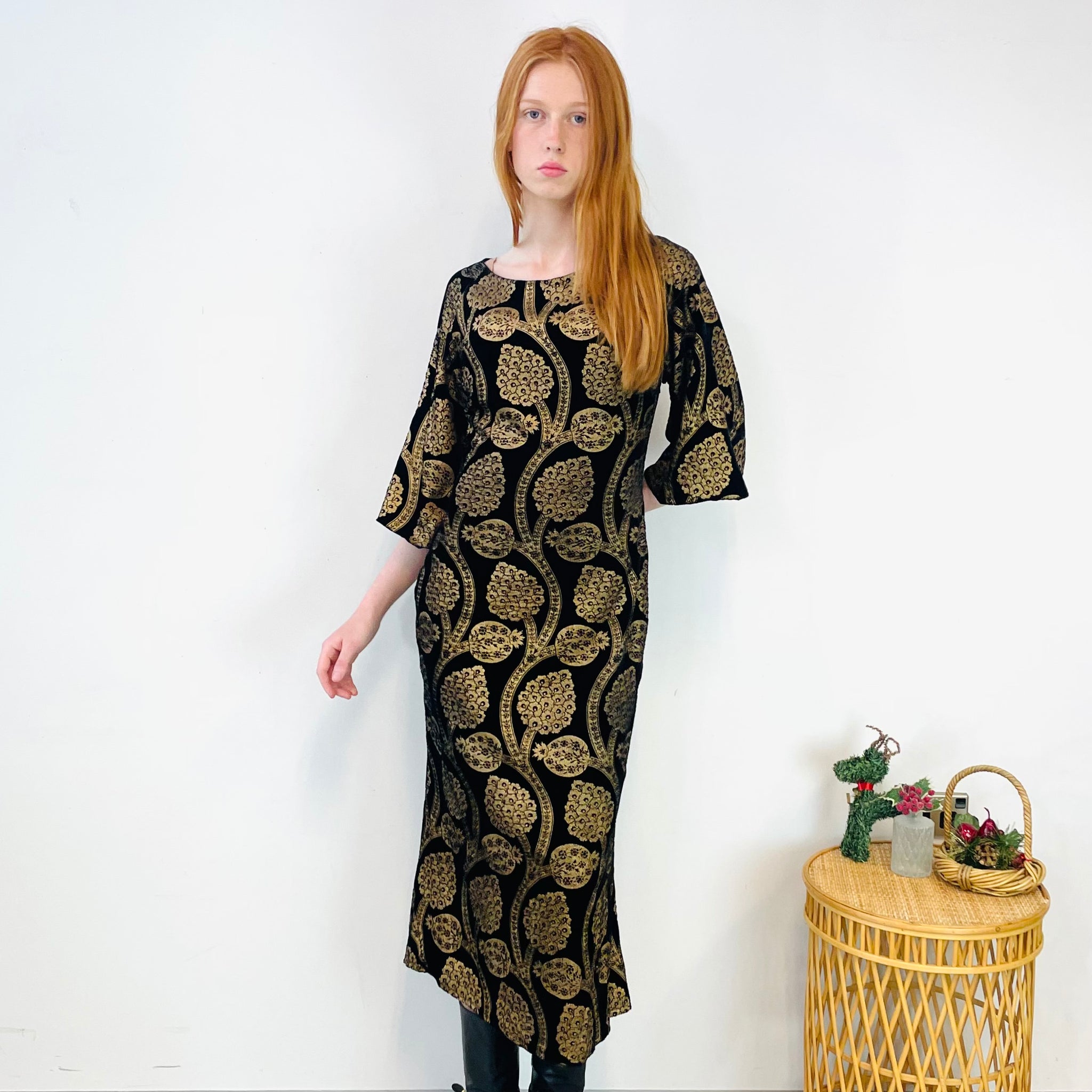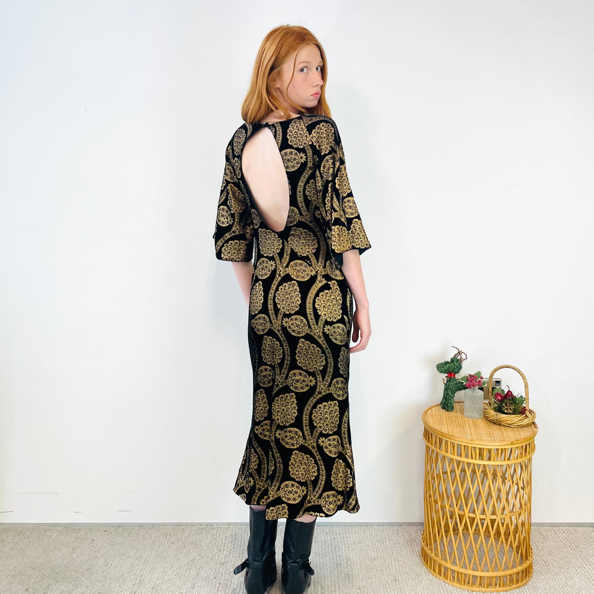 WORLD Velvet Floral Maxi Dress (S)