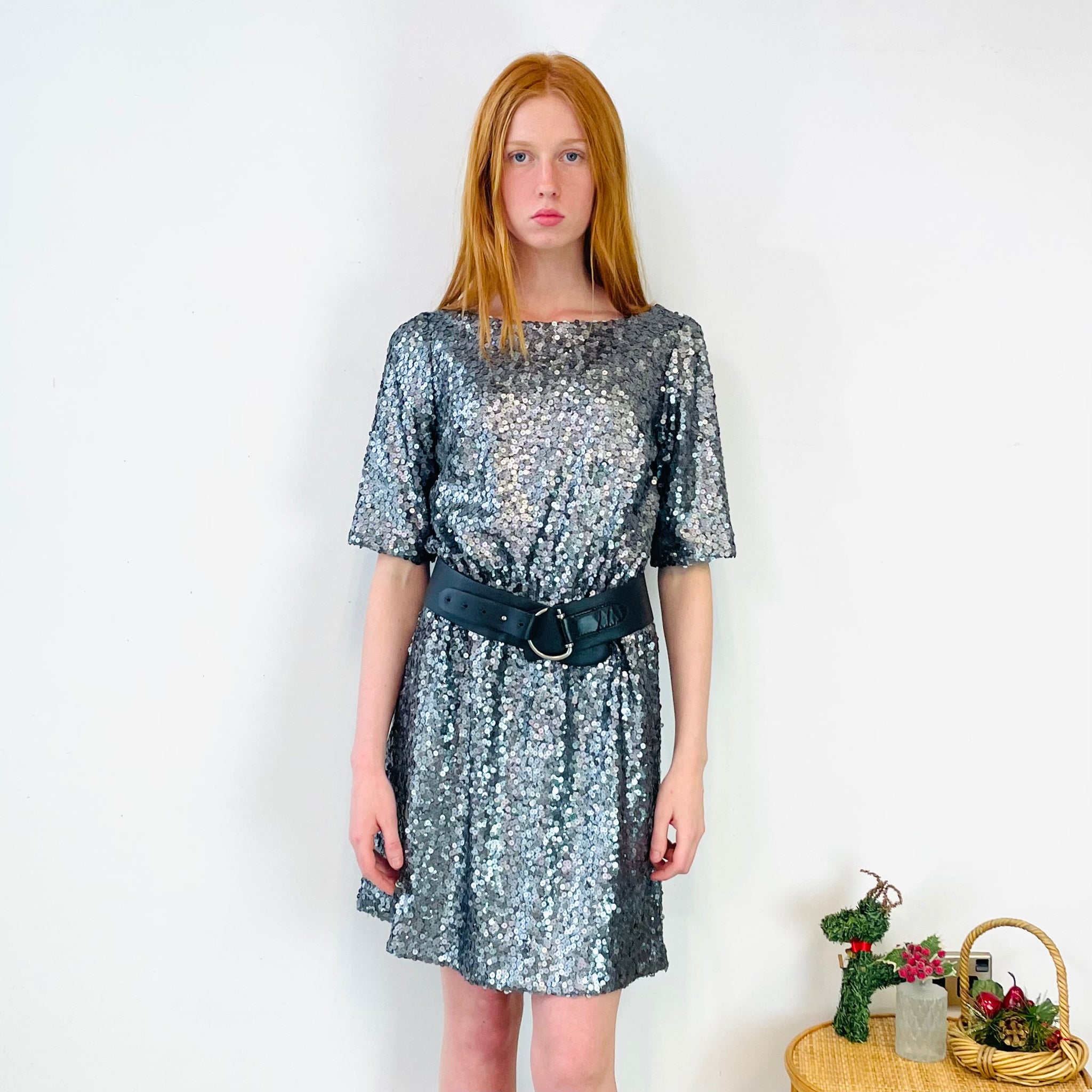 Dark Silver Sequin Mini Dress (S)