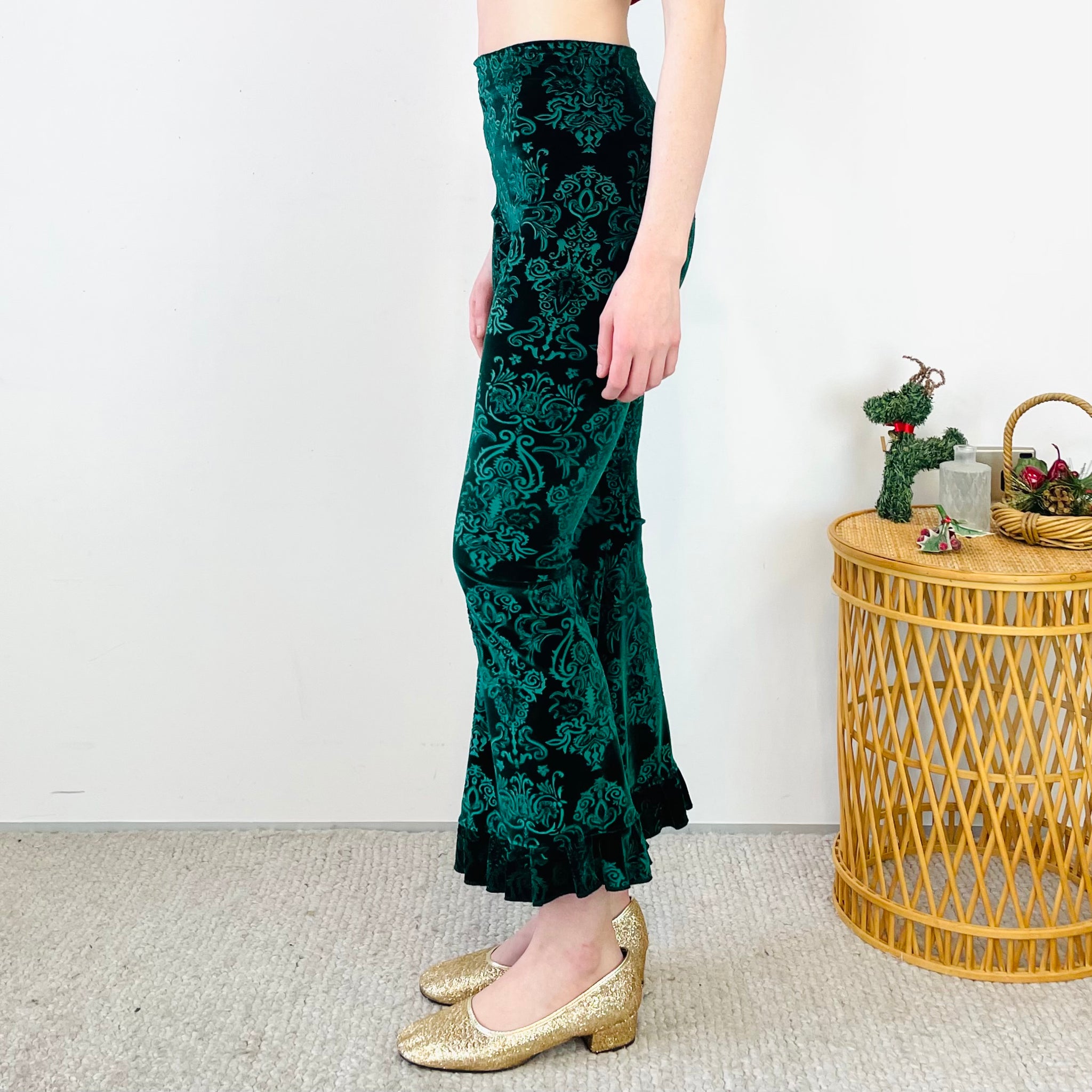 Flared Embossed Velvet Pants (XS)